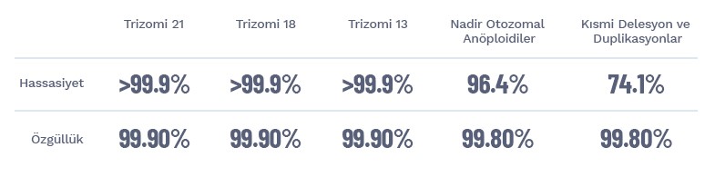 - Genom çapında fetal kromozomal anomali tespiti : 2300'ün üzerinde örnek ile valide edilmiş kapsamlı test menüsü